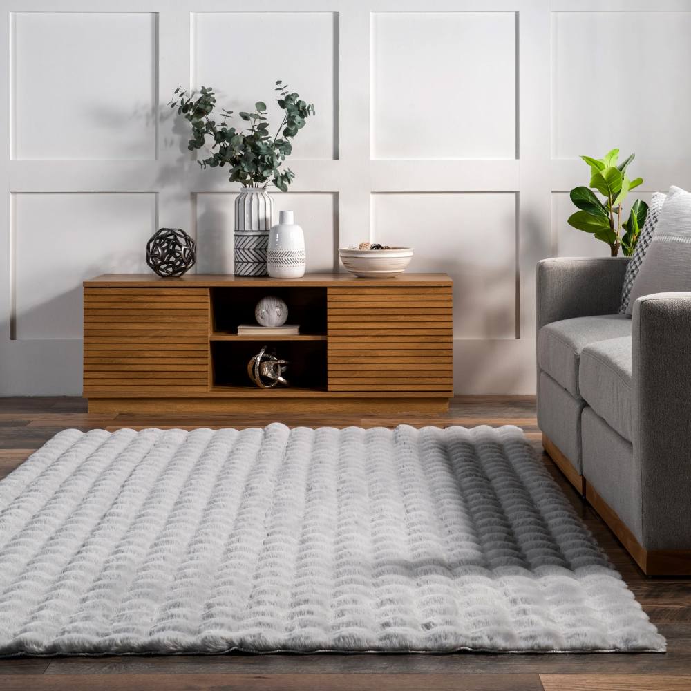 Γούνινο Χαλί Rabbit Fur Bubble Γκρί Ανοιχτό 160x230cm