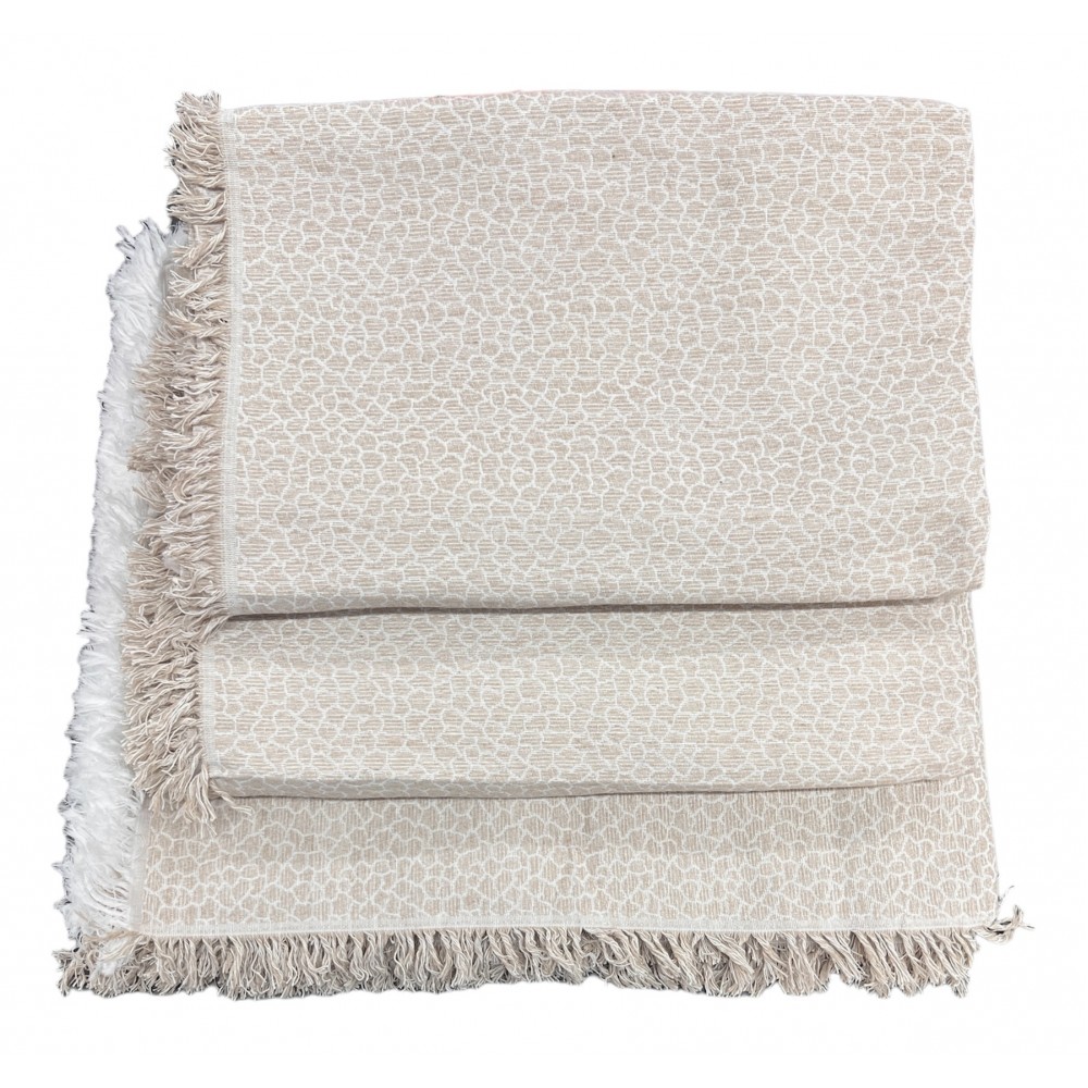 ΣΕΤ ΡΙΧΤΑΡΙΑ CHENILLE 3 ΤΕΜΑΧΙΩΝ ΜΕ ΣΧΕΔΙΟ -Κωδικός 03 με Κρόσια Beige