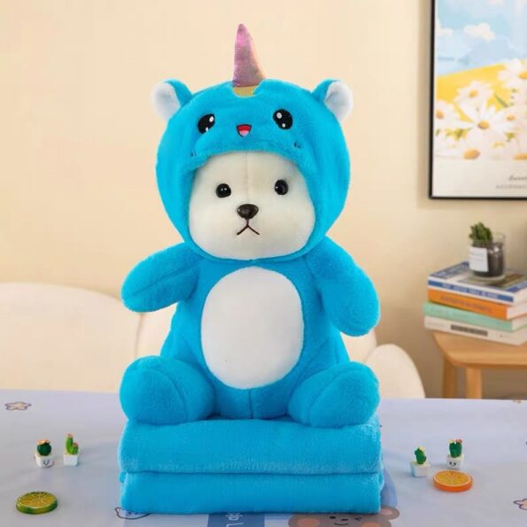 Λούτρινο Αρκουδάκι με Kουβέρτα 2 σε 1 Γαλάζιο
