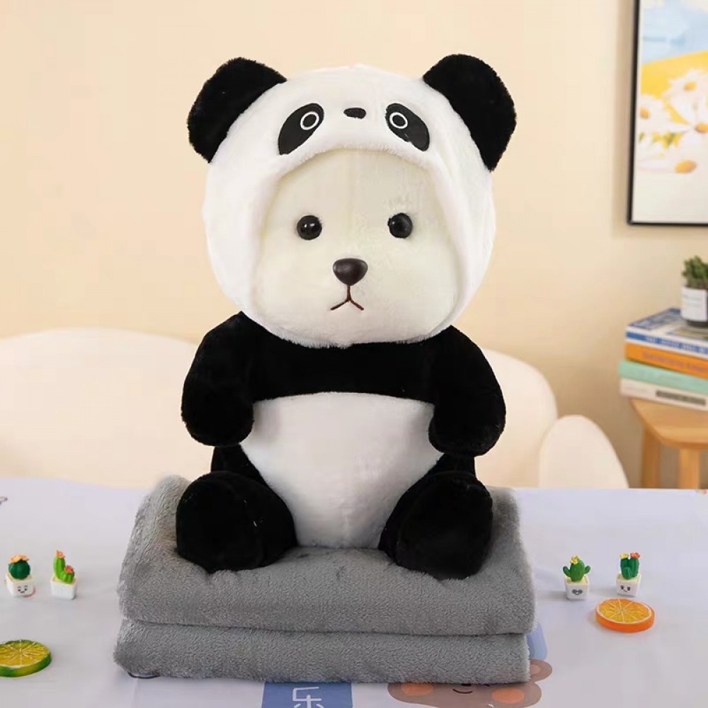 Λούτρινο Αρκουδάκι με Kουβέρτα 2 σε 1 Μαύρο-Λευκό